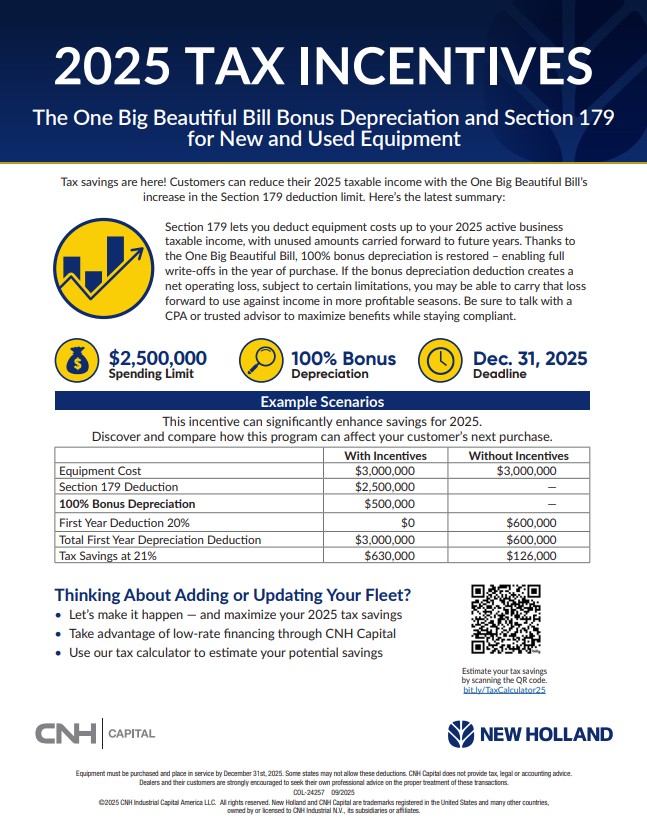 SS Equipment does not provide tax, legal or accounting advice. Customers are strongly encouraged to seek their own professional advice on the proper treatment of these transactions.